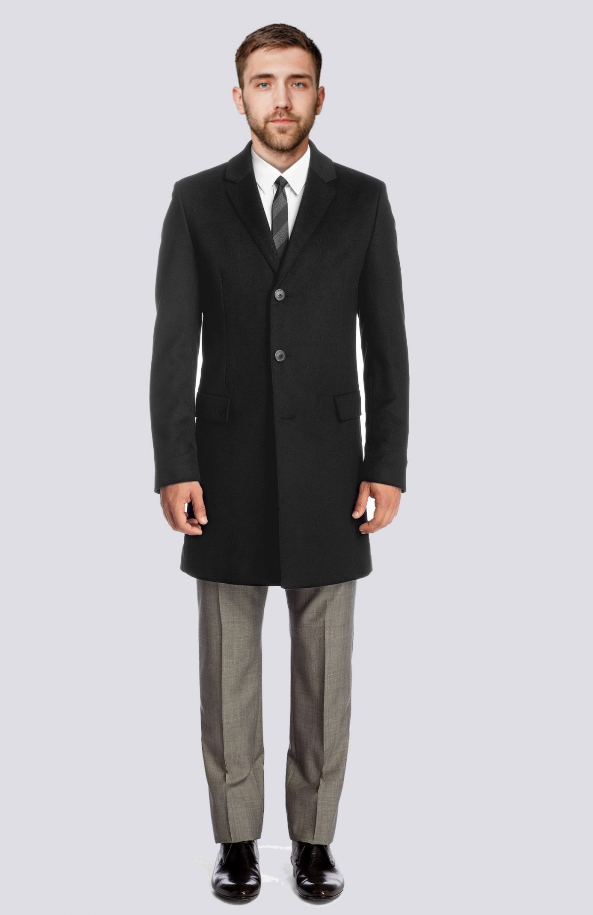 Il s’agit d’un manteau de confection sans aucun faille qui vous donnera un look assuré, sans aucun compromis. Le tissu de qualité est fait d’un mélange harmonieux de laine et de cachemire et vous offrira chaleur en automne et hiver. Le look est finement compléter par différents éléments du design, tels que la coupe droite classique, la silhouette à trois boutons, les poches à rabats, la fente centrale placée au dos et les pinces à la taille. Ces caractéristiques participent à l’aspect visuel, mais offrent également confort et praticité. Le tout est en harmonie avec le col à revers étroit, qui viendra encadrer à la perfection votre chemise et cravate.