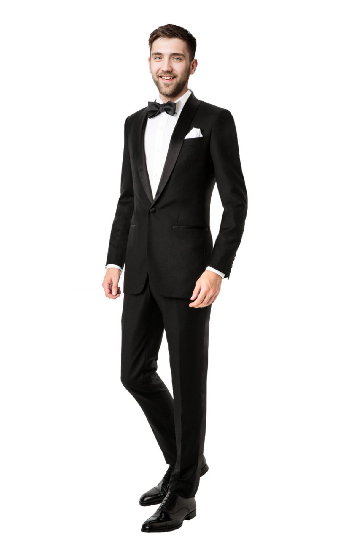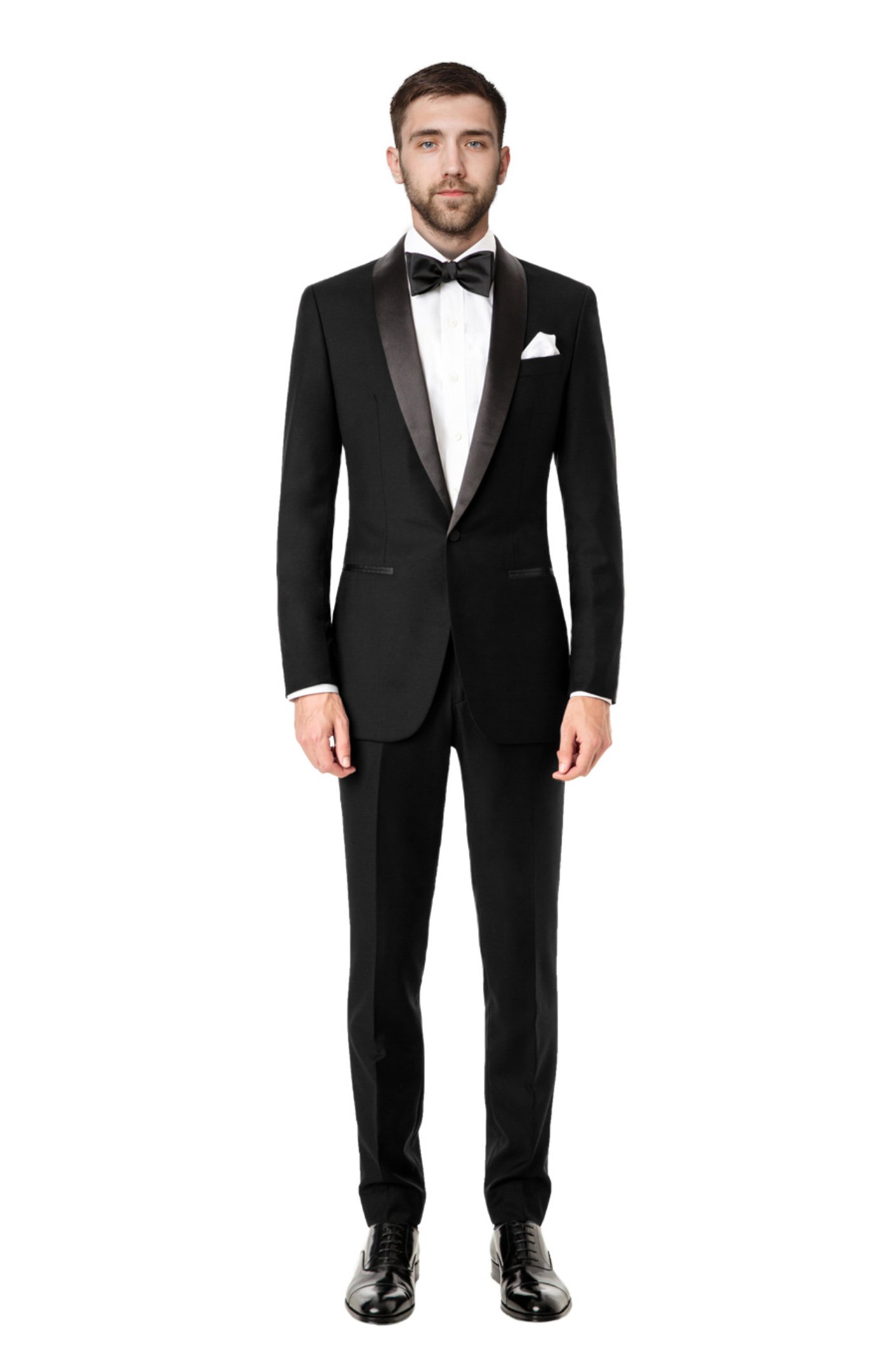 En s’inspirant des smokings de grandes soirées, celui créé ici par Tailored Suit Paris est un smoking noir de grande qualité présentant un col châle, dégageant ainsi beaucoup de charme. Il est tout aussi approprié pour les grandes soirées formelles que sa version classique, mais avec une petite touche inattendue, qui apportera originalité à votre soirée. Il est idéal pour les homme désirant un look un peu plus doux et décontracté, tout en gardant le côté solennel d’une tenue de soirée. Ce smoking noir est une option parfaite de tenue pour le marié ou encore pour les invités de marque.