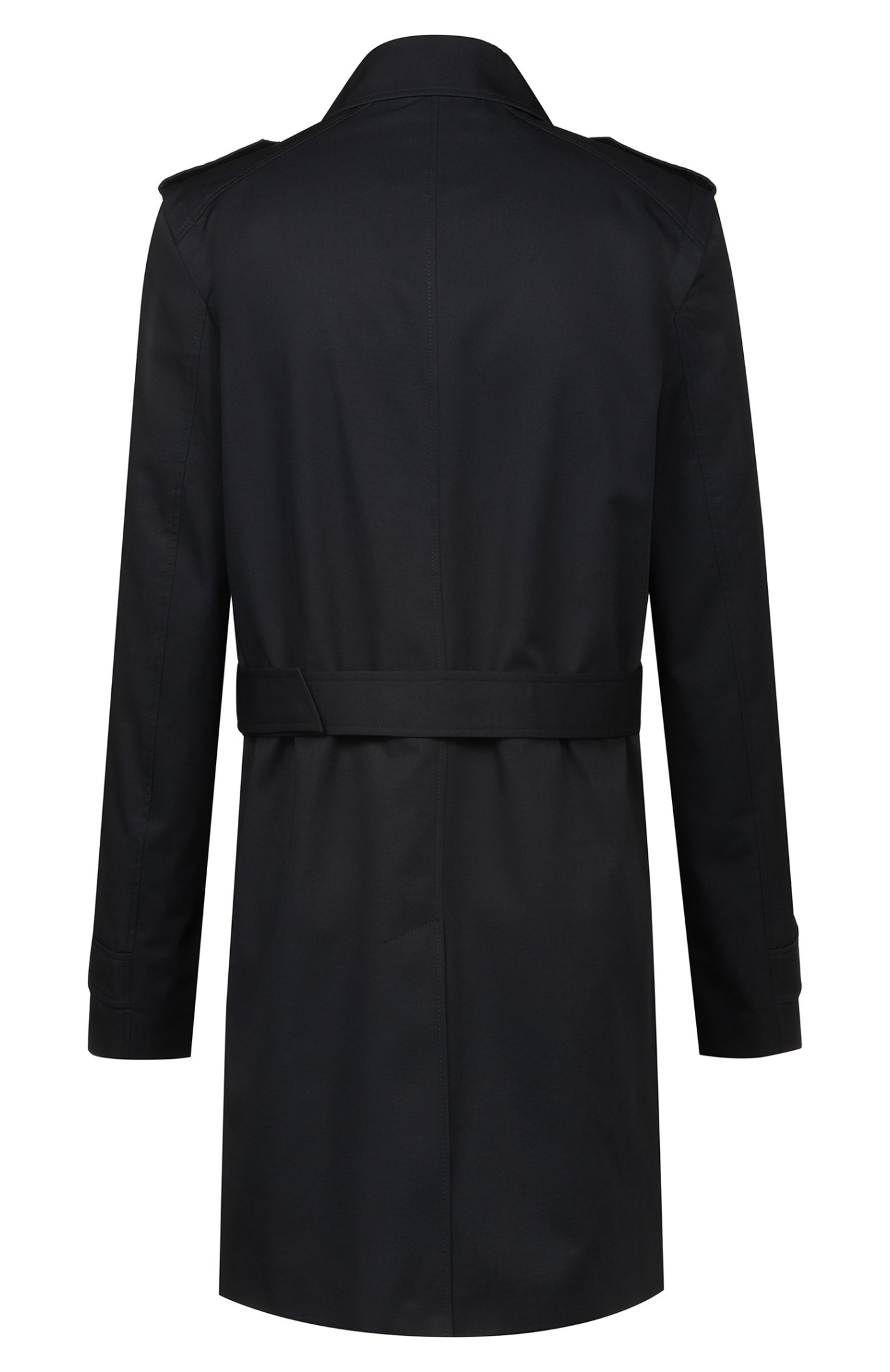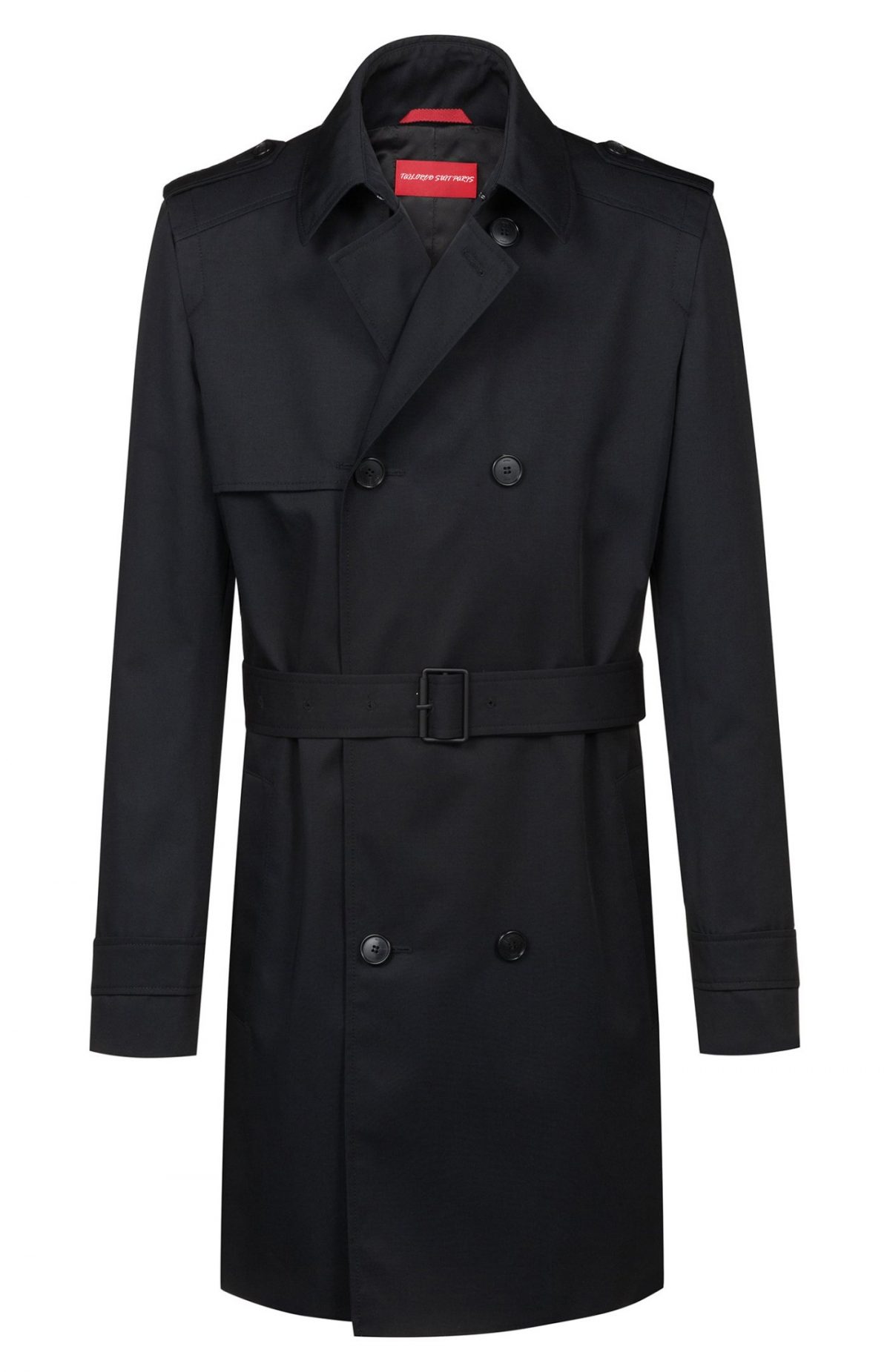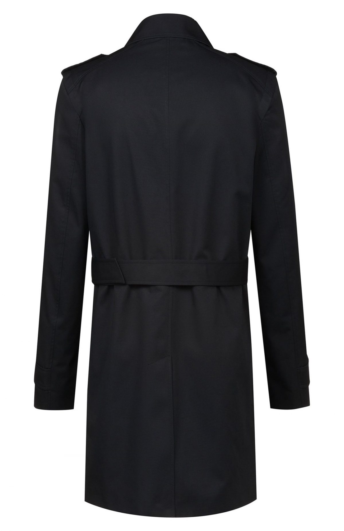 Le manteau présenté ici est un magnifique trench-coat, confectionné avec un tissu extérieur 100% coton de couleur noire et unie. Ce manteau croisé qui possède une coupe droite, est pourvu de différents détails authentiques et très pratiques. Par exemple, il dispose de pattes d’épaules pour donner du style, d’un rabat-tempête qui offre une protection efficace et d’une ceinture à boucle pour un ajustement chic et parfait. Il est également possible de relever le col en pointes afin de donner une touche spéciale à votre look. Vous serez assurément satisfait par ce manteau spécialement conçu pour vous par Tailored Suit Paris.